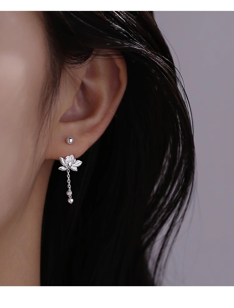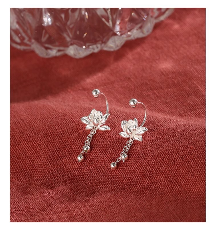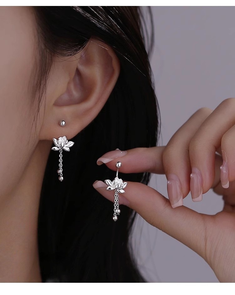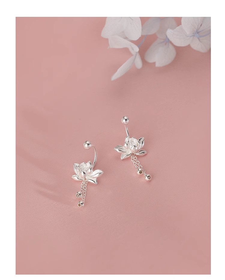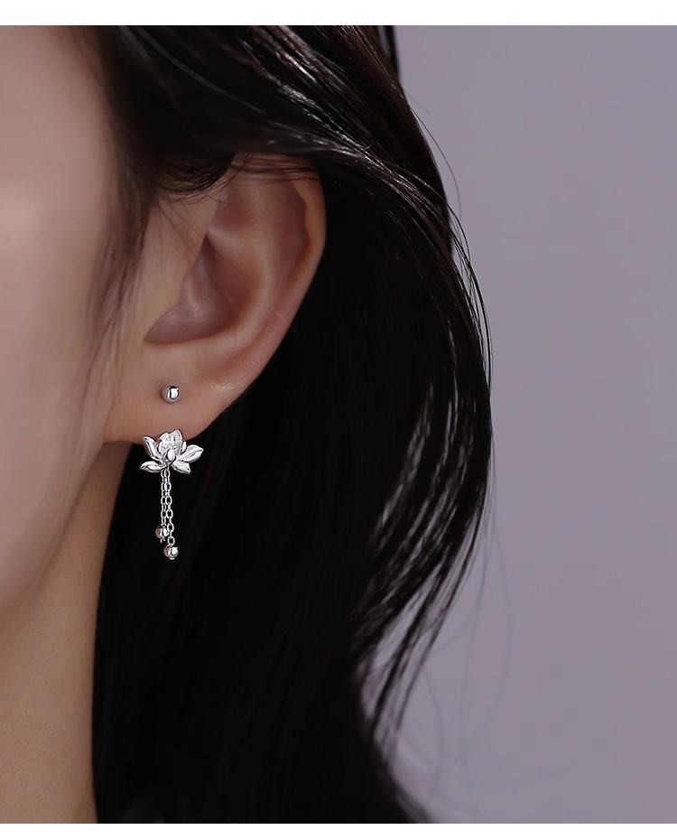 925 Silver Needle Lotus Earrings For Women