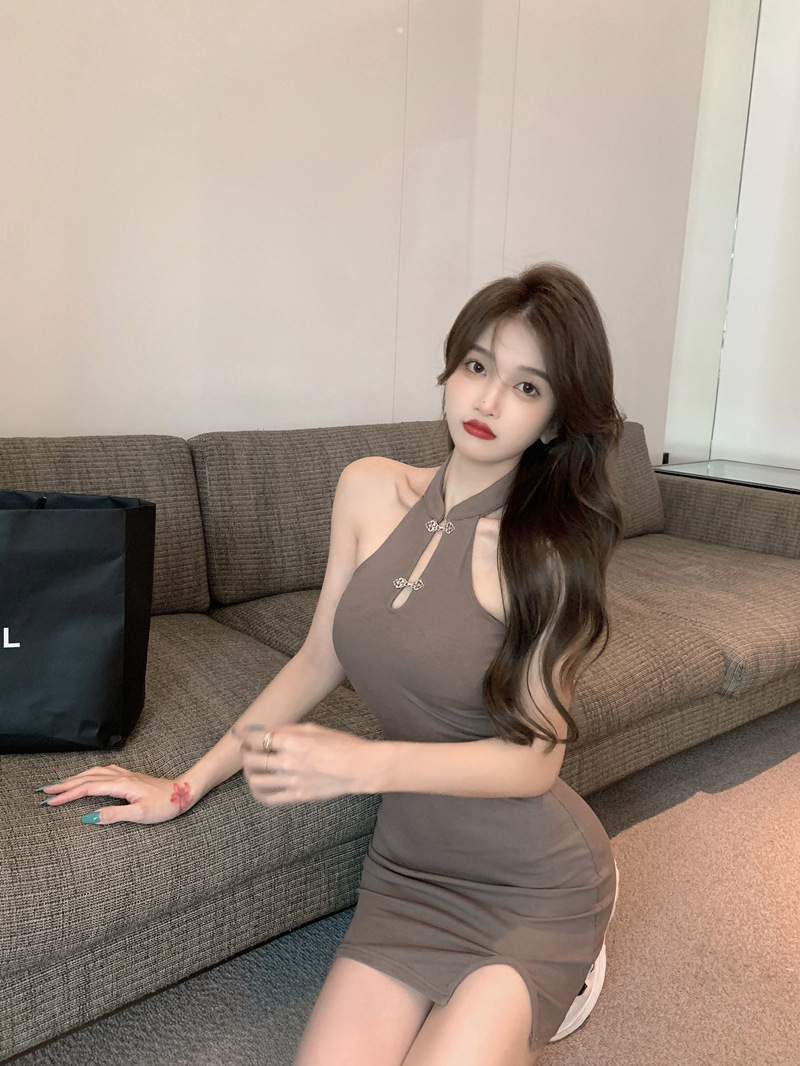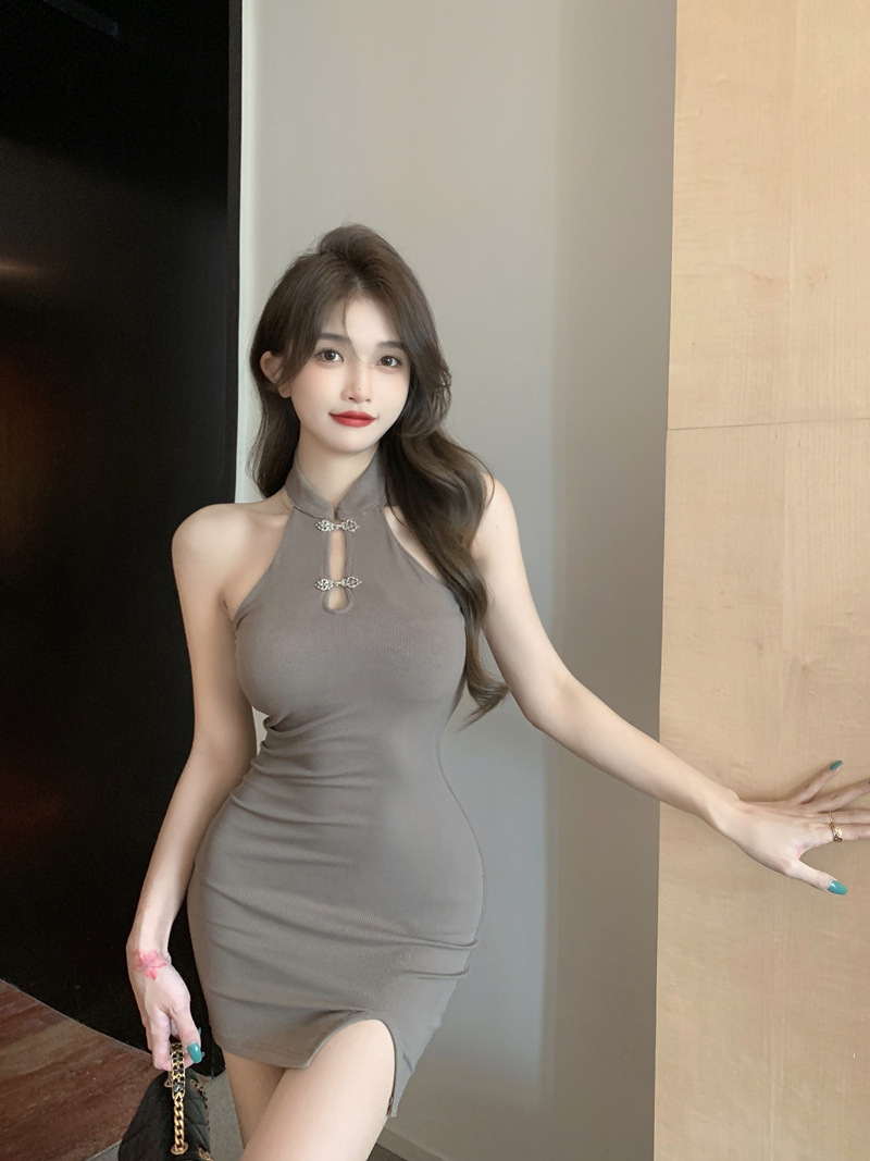 Womens Solid-Color Retro Off-the-Shoulder Slit Bodycon Skirt